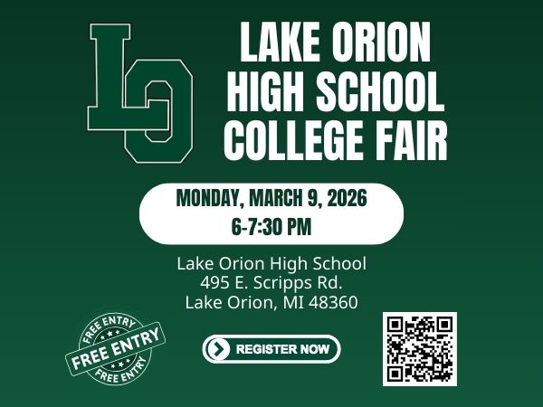 The 2026 Lake Orion High School College & Career Open House is scheduled for Monday, March 9, 2026, from 6–7:30 PM in the LOHS Commons. This free event allows students to meet with representatives from colleges, universities, military branches, and apprenticeship programs to explore post-high school options. Dress nicely and let Mrs. Kimosh know if you’d like a copy of your transcript to bring with you.